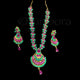 Some pieces doesn’t need any words to describe and this necklace is one such kind. The ensemble of ruby red and emerald green AD stones is set as in real gold and you just can’t take your eyes away. Very much suitable for teens and for elegant set lovers.